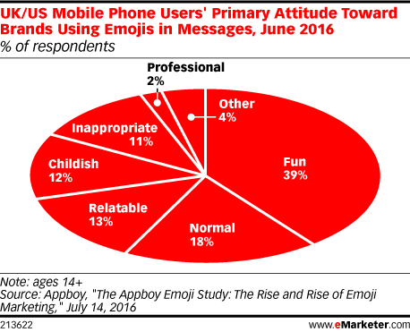 It’s important to remember your social marketing goals when considering emojis in your posts. According to statistics, emoji’s are normal, relatable and fun (60%) but run the risk of coming off less professional, childish or inappropriate (25%). There are obviously different types of posts and engagement, which would factor greatly into the perceived value of emoji use.