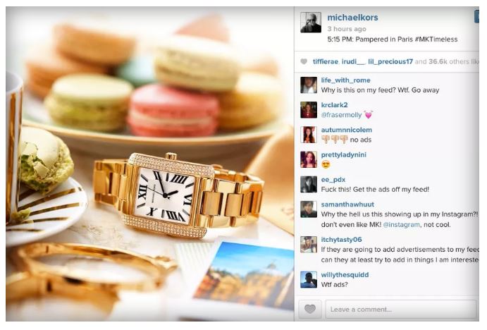 A bad Instagram campaign or account feels like advertising. It feels like the photos are ripped from print advertising and plastered on Instagram with no reverence for the platform. Users know what the environment should feel like, and they’re not shy about it if they think you’re doing it wrong, like when Michael Kors fueled a fire in the comments section.